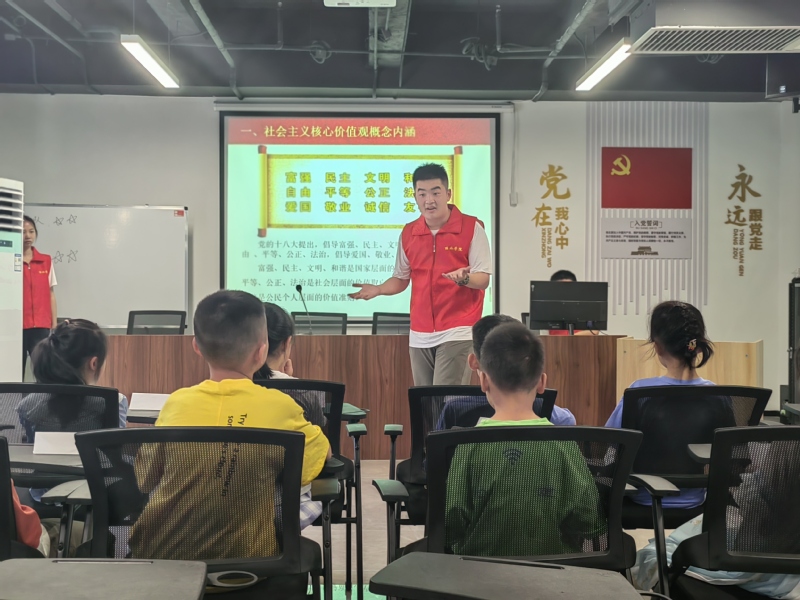 团队不仅通过发挥各自的特长,给孩子们准备了丰富多彩的趣味课程,如书法、绘画、武术等,还通过带领孩子们观看红色微视频、红色电影、朗读社会主义核心价值观等,向孩子们传递中国精神,弘扬红色正能量。期间,团队还邀请了育才中学的老师为孩子们上来一节“我的情绪我做主”的心理课,与社区一起开展了防电信诈骗安全教育和防溺水安全教育。丰富多彩的课程,不仅充实了孩子们的暑假生活,更让他们领略不一样的知识的味道,提升了他们的学习兴趣。