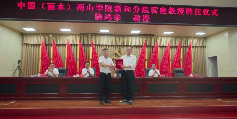 现场,双方签署了合作共建协议,为中国(丽水)两山学院新和分院进行了揭牌。张海波代表新和县委党校,为丽水市政协原副主席、中国(丽水)两山转化研究院院长饶鸿来颁发客座教授证书。