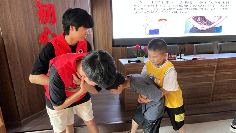 活动中,实践团队分别为五个社区共两百余名社区居民,讲解针对不同人群的急救方式,演示了急救的手法口诀“剪刀石头布”:左手呈“剪刀”位于脐上,右手握拳为“石头”顶于左手上方,再将左手变为“布”包住“石头”反复向上冲击。实践团队通过生动的语言、真实的案例、巧妙的口诀,就不同急救人群的划分,指导社区居民了解并掌握海姆立克急救法。