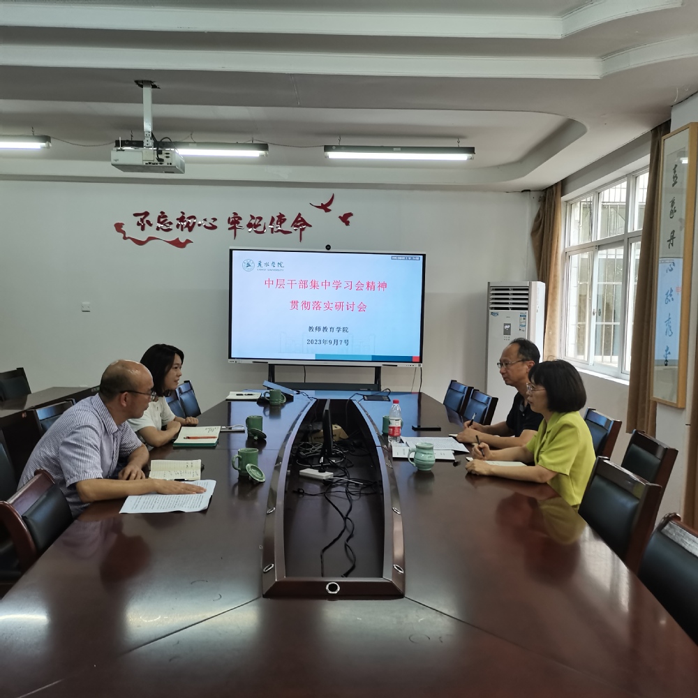 9月7日,教师教育学院领导班子风尘仆仆从学校中层干部暑期集中学习会回来后,立即召开了学习会精神贯彻落实研讨会。