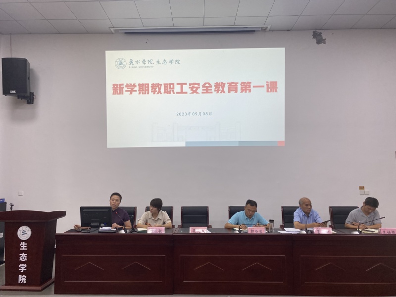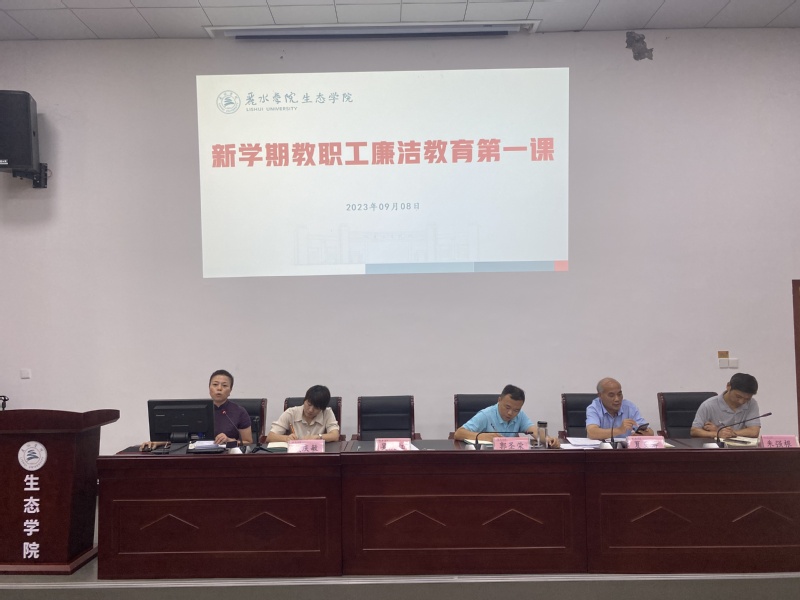 为全面做好新学期开学准备工作,确保新学期各项工作有序进行,及时有效传达学校2023年暑期中层干部集中学习会的精神,进一步提升教职工安全管理和防范能力,敲响新学期廉政警钟第一声,9月8日,生态学院在12D二号阶梯教室召开了全院教职工大会,生态学院领导班子成员及全体教职工参加会议。