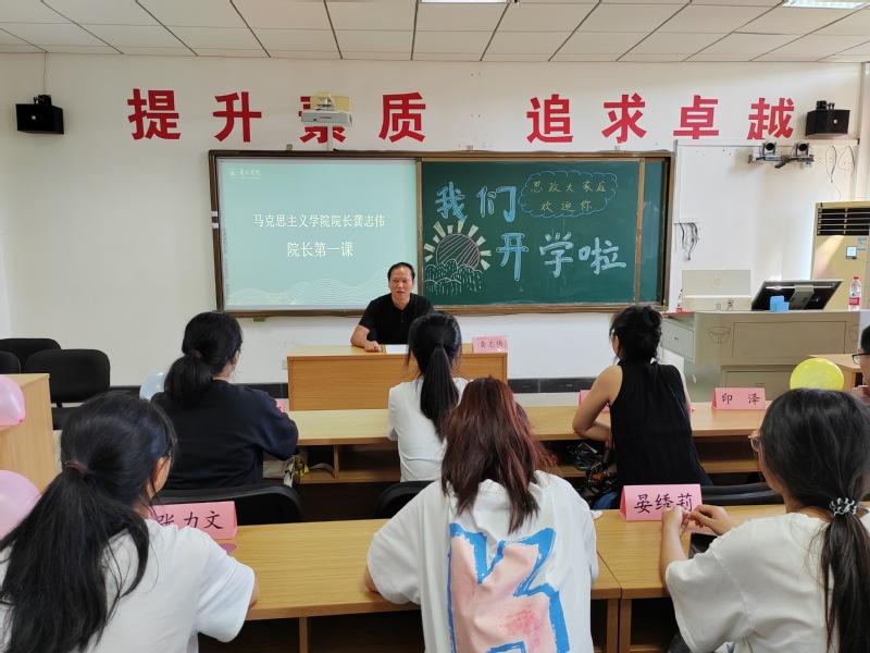 9月9日下午,马克思主义学院召开2023级新生开学典礼,围绕专业基本情况、新生入学教育、安全教育等方面为新生进行了详尽指导。马克思主义学院院长龚志伟为新生讲“院长第一课”。他围绕大学未来四年规划,勉励学生们一是厚植家国情怀、爱国爱家爱人民;二是要勤学善思、明确目标,做好人生规划;三是要学会自我管理和与他人相处,保持乐观自信积极向上的心态。“开学第一课”是马克思主义学院新生教育的重要环节,旨在引领新生传承马院精神、做个合格的马院人,成长为有理想、敢担当、能吃苦、肯奋斗的新时代好青年,为民族复兴、祖国建设贡献青春力量。