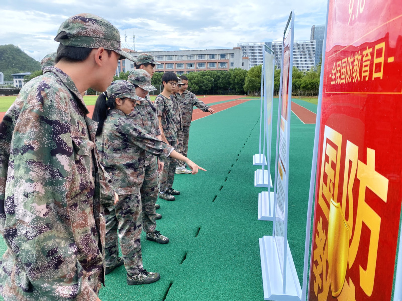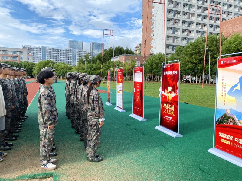 9月16日是我国第23个“全民国防教育日”,工学院通过宣传加宣讲的形式向新生们普及军事知识技能,组织学习国防知识、增强国防意识,加强爱国主义教育。