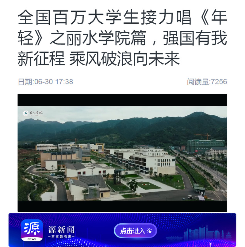 6月30日,源新闻客户端刊发了我校学子接力唱响《年轻》丽院篇的内容。