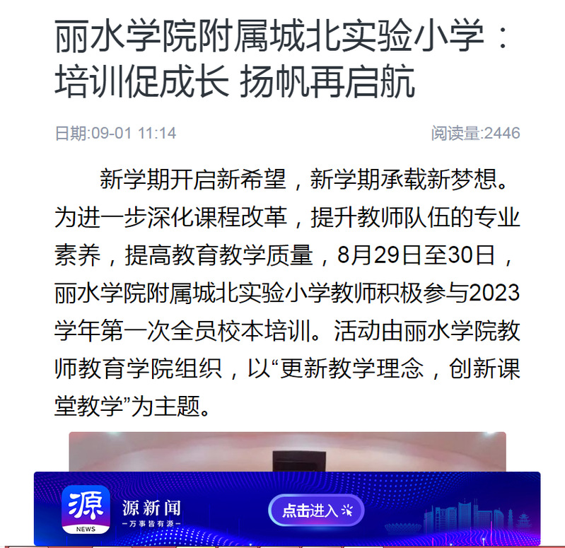 9月1日,源新闻客户端刊发了我校组织附属城北小学教师培训活动的消息。