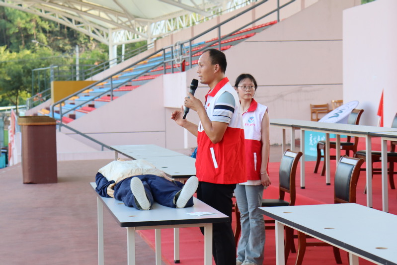 市消防救援支队队长雷莉鹏向同学们介绍了火灾的性质与原理、消防安全隐患分类,重点讲解了宿舍消防安全注意事项、初起火灾扑救方法、灭火器使用方法、如何报火警、火场自救逃生技巧等内容。浙江省防溺水宣讲员、丽水市游泳运动协会副秘书长吴昊结合真实案例和救援演示,从如何防溺水、预防溺水的措施、牢记防溺水的“六不一会”等,帮助提升学生溺水自救能力素养,牢固树立防溺水安全意识。救护师王久鹏重点围绕岸边救护和心肺复苏(CPR)两方面,结合生动的手势和人体模型,给学生们进行了细致的讲解和演示,并指导新生进行实操演示。