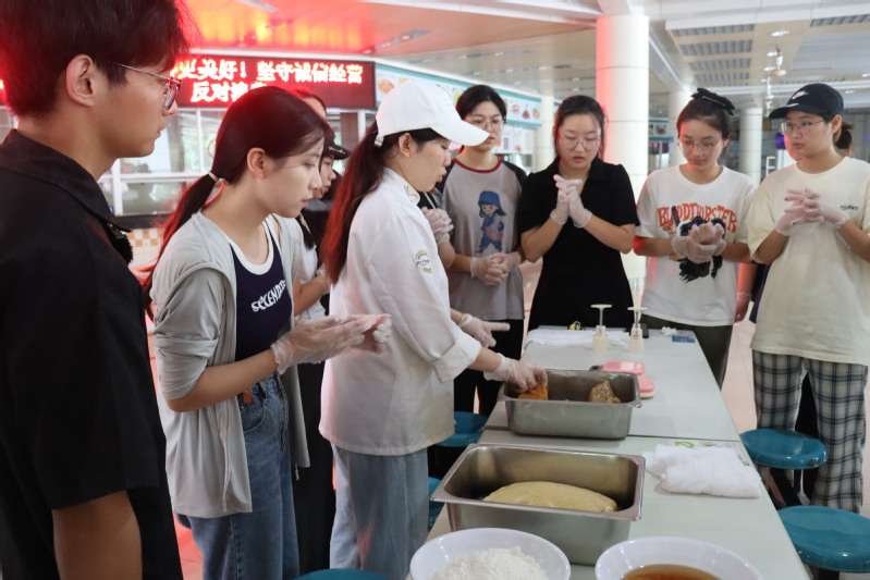 “中秋明月乡思寄,游子天涯盼此时”,为更好地传承和弘扬中华民族优秀传统文化,增强学生对中华文化的认同感和自豪感,营造浓厚的中秋节氛围。9月22日下午,后勤管理处餐饮中心联合学校融媒体中心学生在金桥食府一楼开展“月映桃李,情满中秋”制作月饼活动。