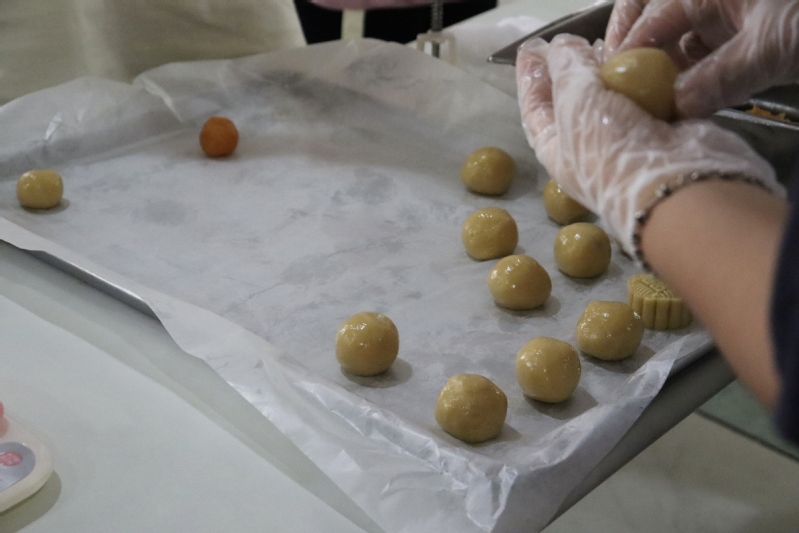 活动开始前,食堂员工提前准备好了面团、碱水、馅料等制作月饼的材料。在热闹的氛围下,食堂的阿姨们为同学们讲解了从准备食材一直到做月饼的每一个细节环节的技法,耐心细致,步骤清晰明了。到了动手实操环节,同学们专心致志,认真仔细,边学边做,很快就掌握了广式月饼制作方法。在同学们的齐心协力下,一个个金黄饱满、香甜细腻的月饼新鲜出炉。之后,同学们将烤好的月饼仔细包装,第一时间送给老师和同学们,让他们感受到了别样的金秋味道。