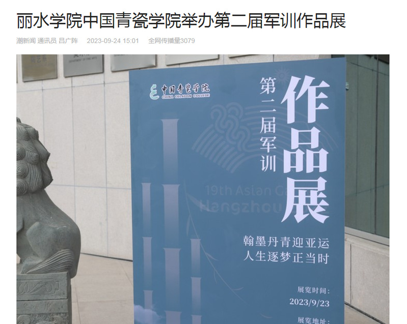 9月24日,潮新闻客户端刊发了我校中国青瓷学院举办第二届军训作品展活动的消息。
