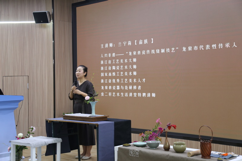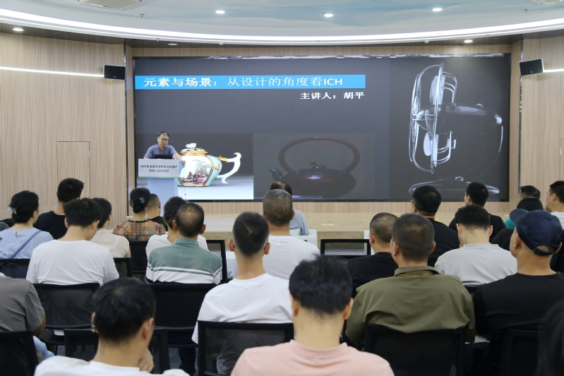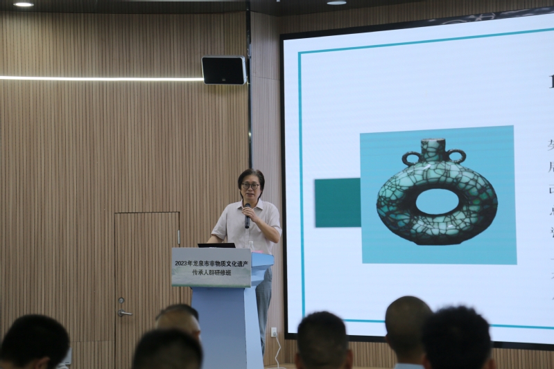 在集中培训期间,来自东南大学、景德镇陶瓷大学、丽水学院、浙江师范大学、江苏省苏州市非遗办、上海新概念广告、龙泉市青瓷行业、丽水鱼跃酿造省级非遗工坊、江苏省传统工坊等的专家学者,分别以“在科创融合背景下龙泉青瓷精准性保护和再生性发展”“影像拍摄基础及运用”“乡村振兴背景下的美学倡导和非遗文创表达”“中国茶文化与现代茶具设计”“探寻‘非遗+文创’的创意融合”“元素与场景:从设计的角度看ICH”“‘鱼跃酿造’非遗品牌建设经验分享”“宋代花器与当代插花艺术”“苏州非遗文创产业发展状况及思考”“民俗文化的传承与发展”“‘有暖制被’非遗营销策略经验分享”等为主题进行了授课。