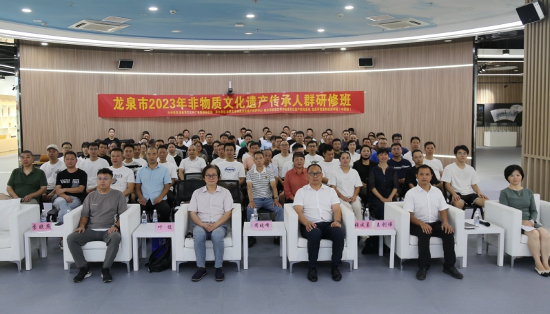 我校浙江省非物质文化遗产研究基地、龙泉青瓷宝剑技师学院、龙泉市文广旅局非遗中心、龙泉市产业创新服务综合体等相关负责人出席开班仪式,市非物质文化遗产传承人及非遗文创工作者等100余人参加了培训。