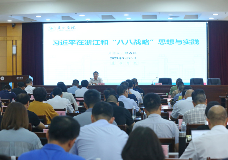 9月25日上午,我校主题教育读书班专家报告会暨九月份党委理论学习中心组学习(扩大)会议在图书馆九楼两山报告厅举行。邀请浙江省委政策研究室原副主任、研究员,浙江省习近平新时代中国特色社会主义思想研究中心研究员郭占恒作专题辅导报告。校党委理论学习中心组成员出席会议,校党委副书记王赳主持。