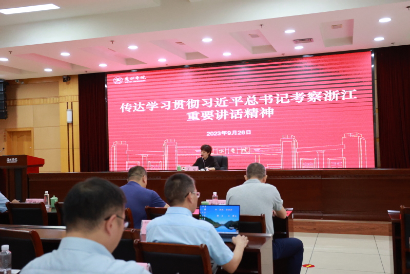 9月26日,我校党委在图书馆两山报告厅召开全体中层干部会议,学习贯彻习近平总书记考察浙江重要讲话精神,传达学习省、市领导干部会议精神以及学校党委会精神。校党政领导班子出席会议,校党委副书记王赳主持会议。