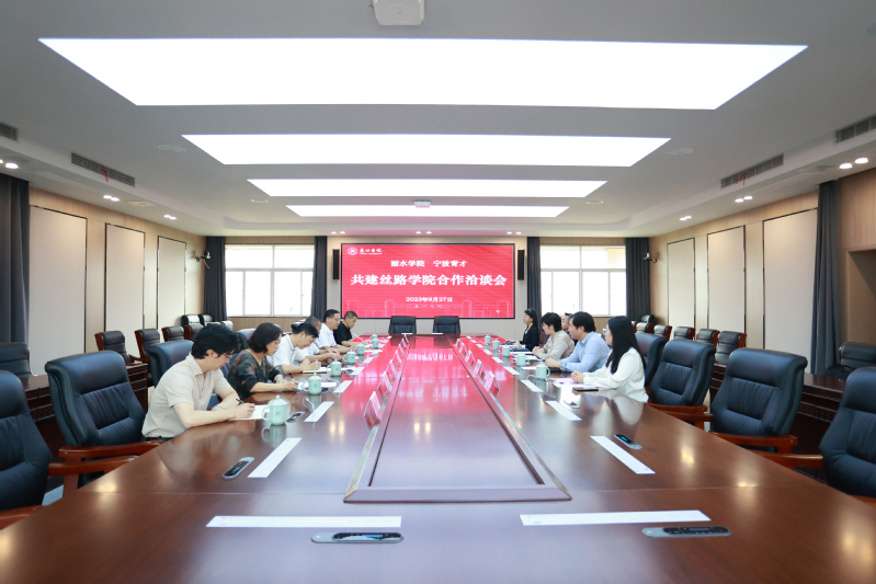 9月27日上午,我校与宁波青才商务服务有限责任公司合作共建丝路学院签约仪式在求是楼五楼会议室举行。副校长彭兵、宁波青才总经理汪丽银出席活动。