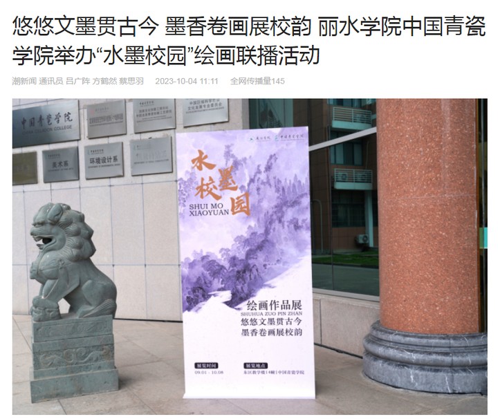 10月4日,潮新闻客户端刊发了我校中国青瓷学院举办以“悠悠文墨贯古今,墨香卷画展校韵”为主题的“水墨校园”绘画联播活动的消息。