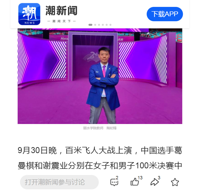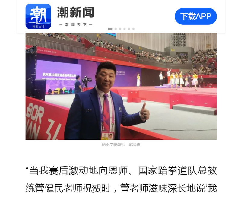 10月9日,潮新闻客户端刊发了我校教师担任亚运会技术官员的消息。