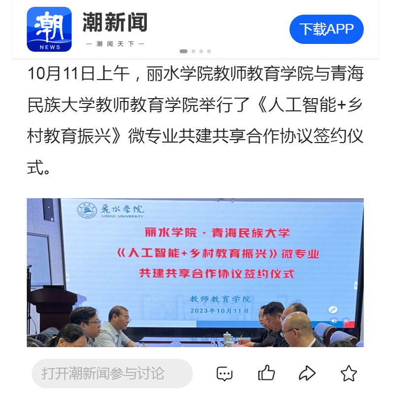 10月12日,潮新闻客户端刊发了我校教师教育学院与青海民族大学签订微专业共建共享合作协议的消息。