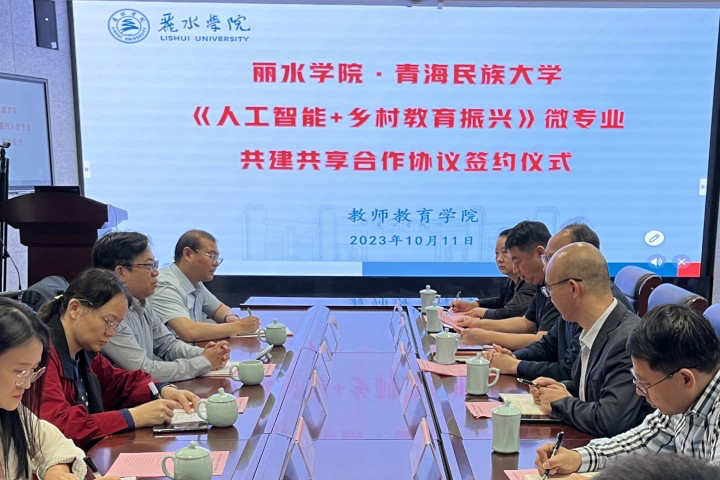 会议指出,建设教育强国是全面建成社会主义现代化强国的战略先导。丽水学院教师教育学院和青海民族大学教师教育学院虽远隔千里,但志同道合、同气连枝,始终怀着“教育为国家之命脉”的执着信念,共同坚守师范教育特色,为国家输送了大批师德高尚、德才兼备的教育人才。两院共同肩负着培养卓越教师、引领基础教育创新发展的历史重任,有着共同推进教育改革的美好愿景。两所学院签署共建共享合作协议,开启了“东西合璧”两校合作的新篇章,期待通过人工智能为乡村教育振兴注入新动力,为教育事业发展创造新契机。希望两所学院共担使命、携手共进,充分发挥各自在科学研究、人才培养、学科建设等方面的办学优势,深入开展项目合作、平台合作,实现共赢发展,为教育强国建设贡献师范学院力量。