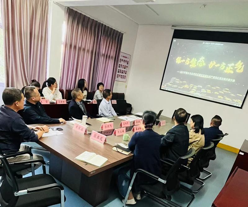 为充分发挥反面典型的警示教育作用,进一步增强党员干部拒腐防变的免疫力,引导党员干部讲规矩、知敬畏、存戒惧、守底线,会议还组织观看了党风廉政警示教育专题片,切实增强廉洁自律的思想自觉和行动自觉,为全体党员干部敲响了警钟。