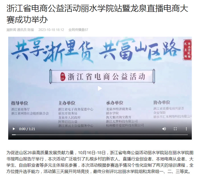 10月18日,潮新闻客户端刊发了我校商学院举办浙江省电商公益活动的消息。