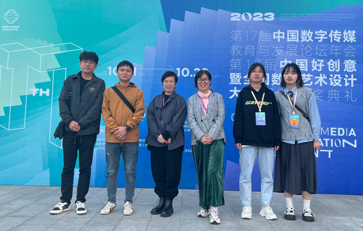 10月20-23日,第17届中国数字传媒教育与发展论坛年会暨第17届中国好创意暨全国数字艺术设计大赛国赛颁奖典礼在济南隆重举行。在本次大赛中,我校学子获5个三等奖,4位教师获优秀指导师称号,4位教师获得中国好创意暨全国数字艺术设计大赛高研班师资证书。视觉传达设计教研室师生一行6人受邀参加活动并领奖。