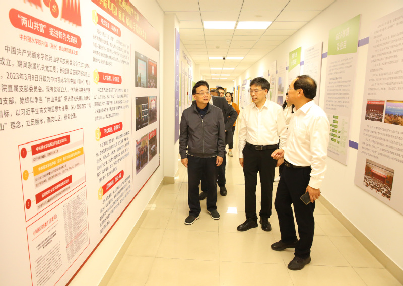 在两山学院,吴锋民详细了解我校两山学院成立以来,在“两山”理论和实践研究方面取得的系列成果,对该院结合地方实际,助推山区高质量绿色发展,努力向国家级智库建设迈进的发展定位高度认同;在省级高校示范性党群服务中心,吴锋民对该中心的成功创建表示祝贺,并走进军魂社、女警中队等学生特设党支部,与支部的学生党员们亲切交流;在中医药与健康产业学院,吴锋民听取了该省级平台的发展历程介绍,通过观摩成果展示,进一步感受到了丽水学院近年来在提升平台能级方面取得的积极成效。