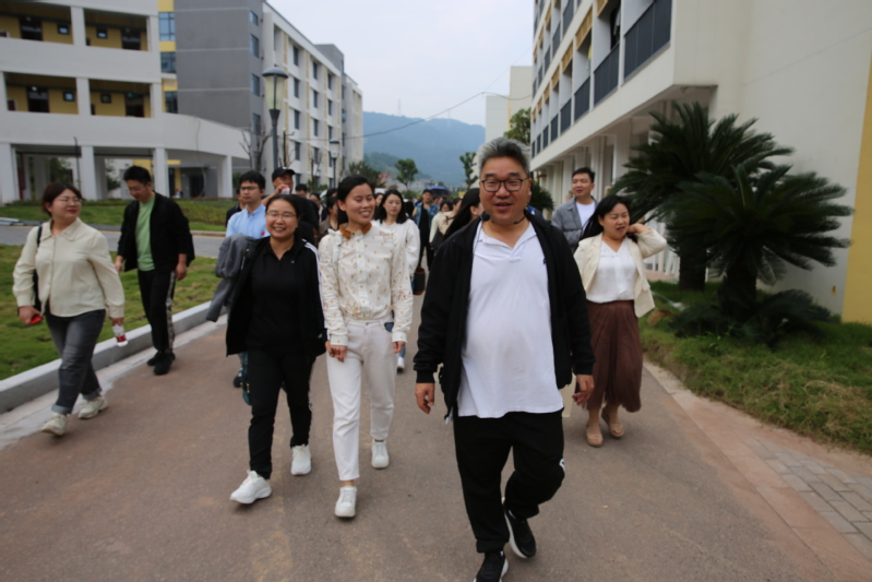 下午1点,新教师们来到了松阳校区,松阳校区管委会主任、职业技术学院院长、党委副书记胡锋吉为新教师们当导游,介绍松阳校区发展与规划。在胡锋吉带领下,老师们参观了校区教学楼、人才公寓、图书馆、演艺厅等地。