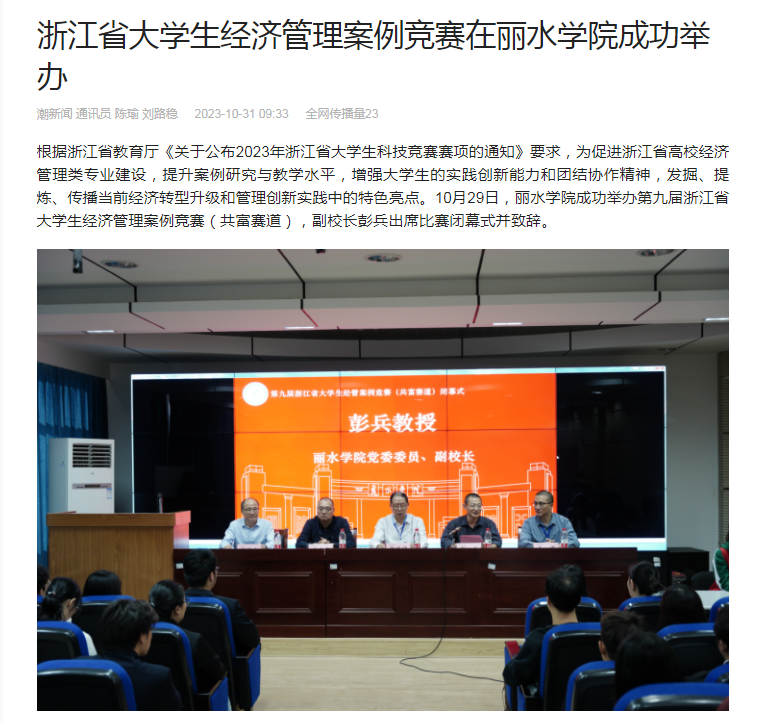 10月31日,潮新闻客户端刊发了我校举办浙江省大学生经济管理案例竞赛的消息。