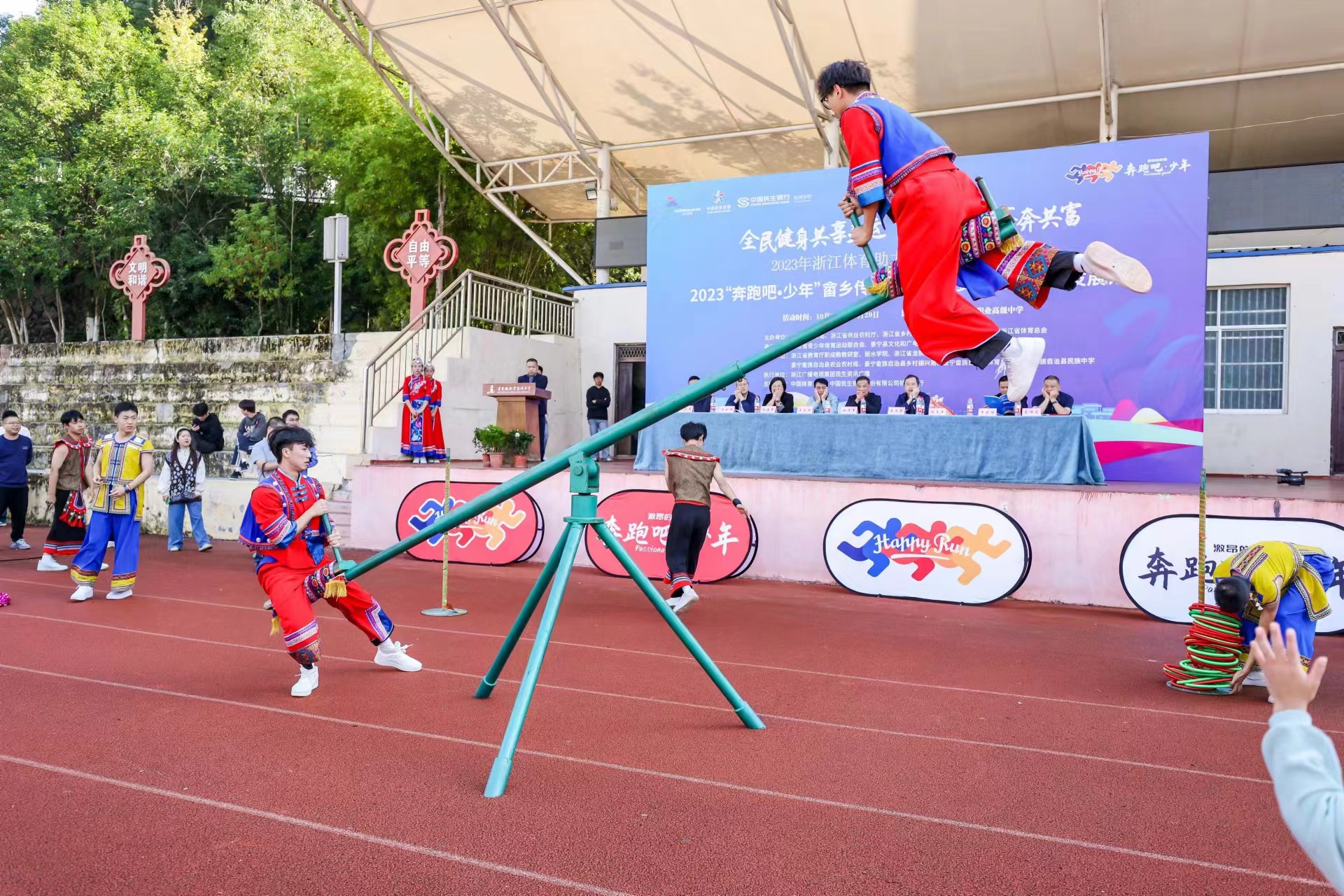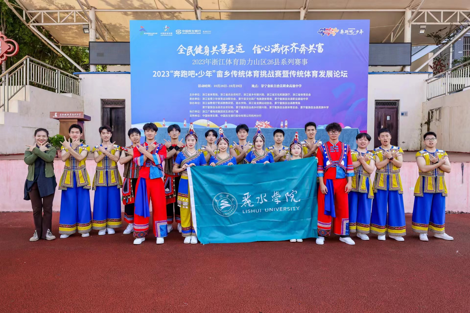 为了助力全民健身共享亚运,信心满怀齐奔共富,进一步铸牢中华民族共同体意识,10月29日,2023“奔跑吧·少年”畲乡传统体育挑战赛暨传统体育发展论坛在景宁开幕。我校作为协办单位积极参与了活动。