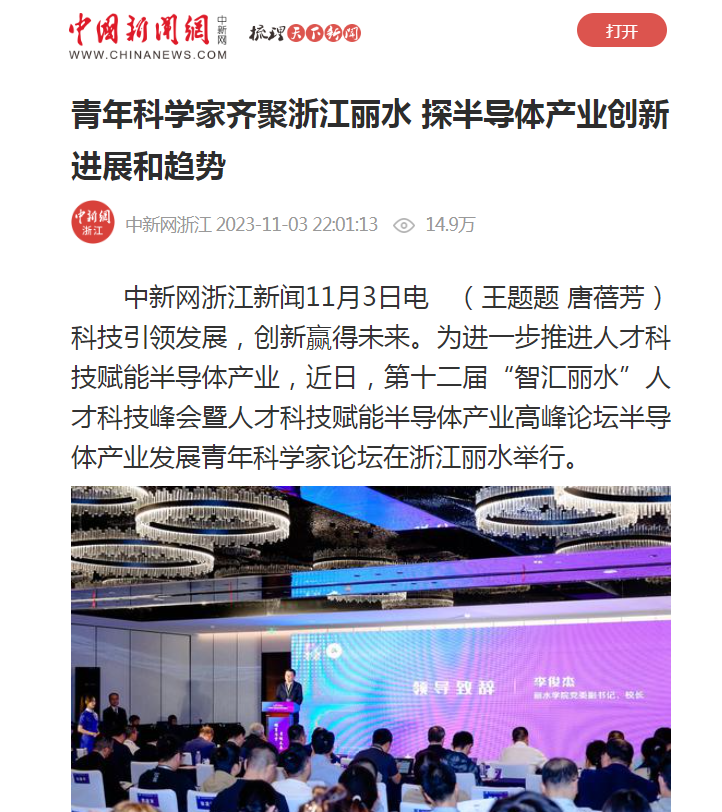 11月3日,中国新闻网刊发了我校举行半导体产业发展青年科学家论坛的消息。