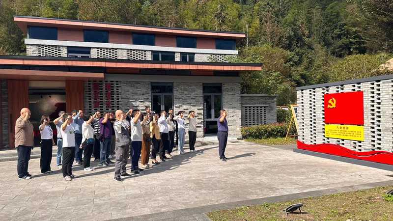在云和县崇头镇梅源村初心广场,全体党员们重温了入党誓词,并沿着总书记的足迹,考察了崇头镇梅源村食用菌基地,听溯源故事,学习“古树下的嘱托”。在习近平总书记曾驻足的古树下,全体党员重温习近平总书记的殷殷嘱托,感受二十年来云和做优乡村自然风貌、做强产业发展、创造幸福生活的壮阔历程,充分感受“新时代富春山居图县域样板区”的建设成果。