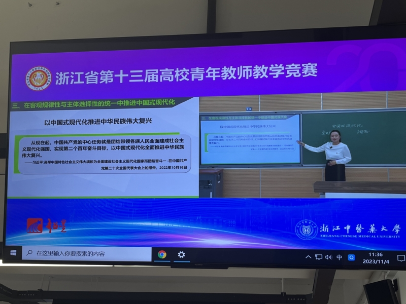11月3日-6日,由浙江省教育厅、浙江省教育工会主办的浙江省第十三届高校青年教师教学竞赛在浙江中医药大学举行,我校马克思主义学院教师刘静荣老师获思想政治理论组二等奖。