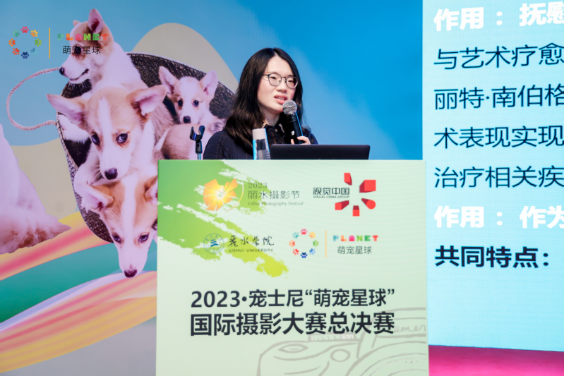 论坛中,我校摄影专业教师陈皛唯以《由“萌宠”生发的愉悦——作为疗愈的摄影》作主旨发言,介绍了摄影艺术对人的疗愈功能以及如何疗愈等引发了现场共鸣,赢得现场热烈的掌声。此外,视觉中国摄影师张天航、AMYWORKS探须视觉创始人郑庆东、浪小爪宠物文旅创始人边绍庆、公安部特邀摄影授课专家黄雄英、无界AI内容生产中心负责人赵杰诚等以《不以标准为美—我的宠物摄影之道》《坚守宠爱情怀 畅想宠业未来》《心随宠动——记录带狗旅行的每一个精彩瞬间》《工作犬之拍摄:规则下的暴力美学》《宠物摄影与 AIGC的融合未来》为题,依次上台做了精彩分享。