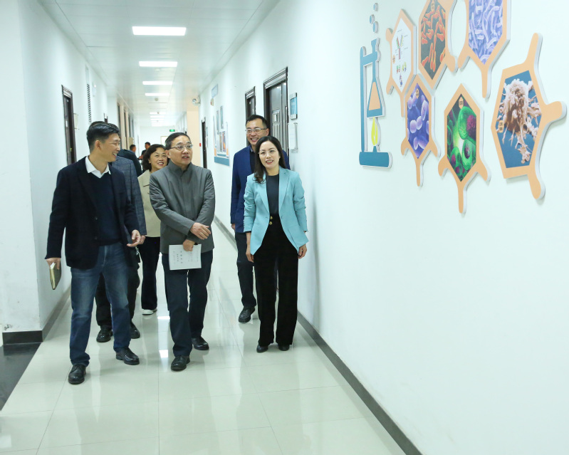 王利琳一行来到靖逸楼C幢二楼教室现场观摩口腔医学教学工作,走访了医学院有关实验室,参观了该院全省高校“双带头人”教师党支部书记工作室。