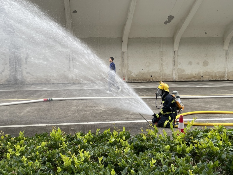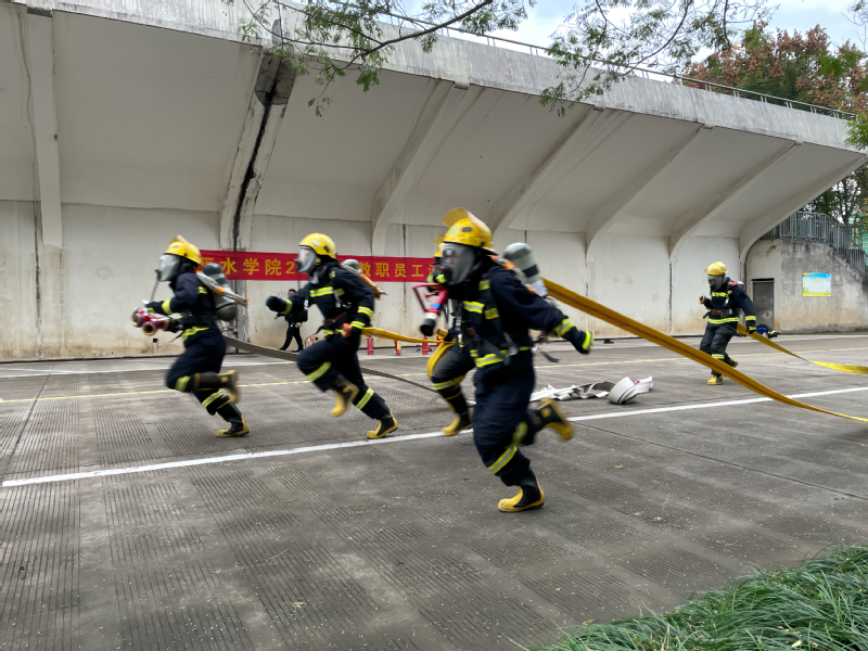 启动仪式后,与会人员一起参与了学校综合体育馆消防应急疏散演练,活动现场模拟了在篮球场、健身房、乒乓球馆门口发生“火灾”,学校微型消防站在第一时间赶到现场,消防中队队员疏散引导学生有序逃生。活动现场丽水市莲都区白云消防救援站消防战士给师生展示百米水带出水灭火演示,以演促防,筑牢消防安全保障。
