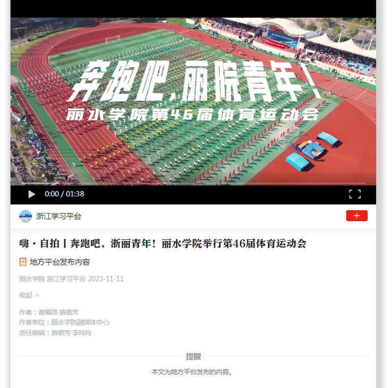 11月11日,学习强国浙江学习平台刊发了我校举行第46届体育运动会的消息。