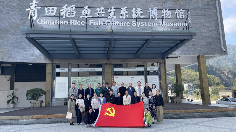 随后,党员们来到方山乡龙现村探寻农遗故事,接受一场红色洗礼。龙现村,位于青田县东南部,依山傍水,风景秀丽,历史文化底蕴深厚,稻田养鱼系统有着千年历史,被联合国粮农组织列为首批“全球重要农业文化遗产保护项目”之一,时任浙江省委书记习近平批示:“关注此唯一入选世界农业遗产项目,勿使其失传。”龙现村把田鱼文化、华侨文化、民俗文化、古居文化等融到生态建设和全村发展当中,真正实现了人文与自然的融合、富裕。党员们来到青田稻鱼共生系统博物馆,实地观摩龙现村农业文化遗产保护和转化成效,领略中国式农业农村现代化的新风貌。接着到货币馆、农耕文化展示馆、吴乾奎故居和侨心向党家国情怀红色革命馆,了解青田华侨“一颗侨心向党,满腔热血报国”,熔铸“浙西南革命精神”的革命事迹。