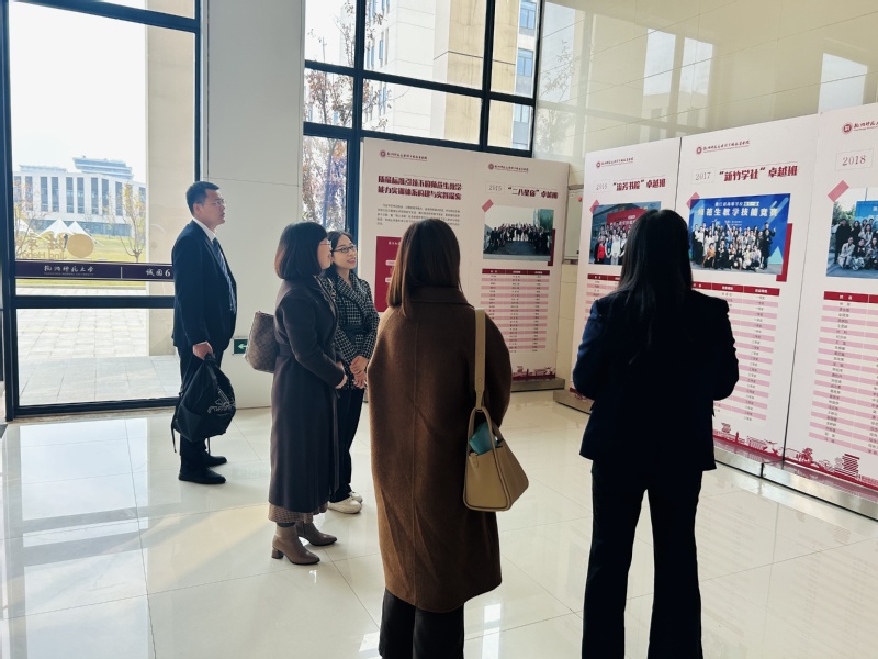 在杭州师范大学经亨颐教育学院,教师教育学院一行首先参观了实验实训中心大楼,重点学习了大楼整体设计方案和师范生培养相关实验设备配置等。随后与会人员进行了座谈交流,经亨颐教育学院负责人介绍了该院的发展历程、办学理念、学科建设、科研情况等,同时重点分享了党建引领事业高质量发展的具体举措和学生思政工作品牌创建、师范生人才培养特色凝练的经验做法,双方还就高校党建工作标杆院系、高校党建工作样板支部和高校“双带头人”教师党支部书记工作室等创建工作进行了热烈的交流讨论。