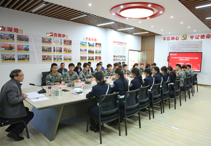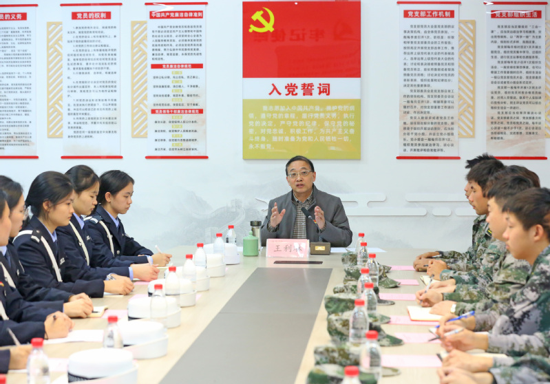 11月22日下午,校党委书记王利琳在党群服务中心二楼会议室为军魂社、女警中队特设党支部上主题教育专题党课时强调,要坚持以习近平新时代中国特色社会主义思想为指导,做青年学生群体中的思想政治的引领者、学习实践的模范生、知行合一的践行者、推动(学校)发展的参与者,进一步助推全校青年学生在以学铸魂、以学增智、以学正风、以学促干上下功夫见实效,努力把特设支部打造成为基层党建的品牌标杆,向创建全国、全省高校党建工作样板支部的目标不断向前迈进。