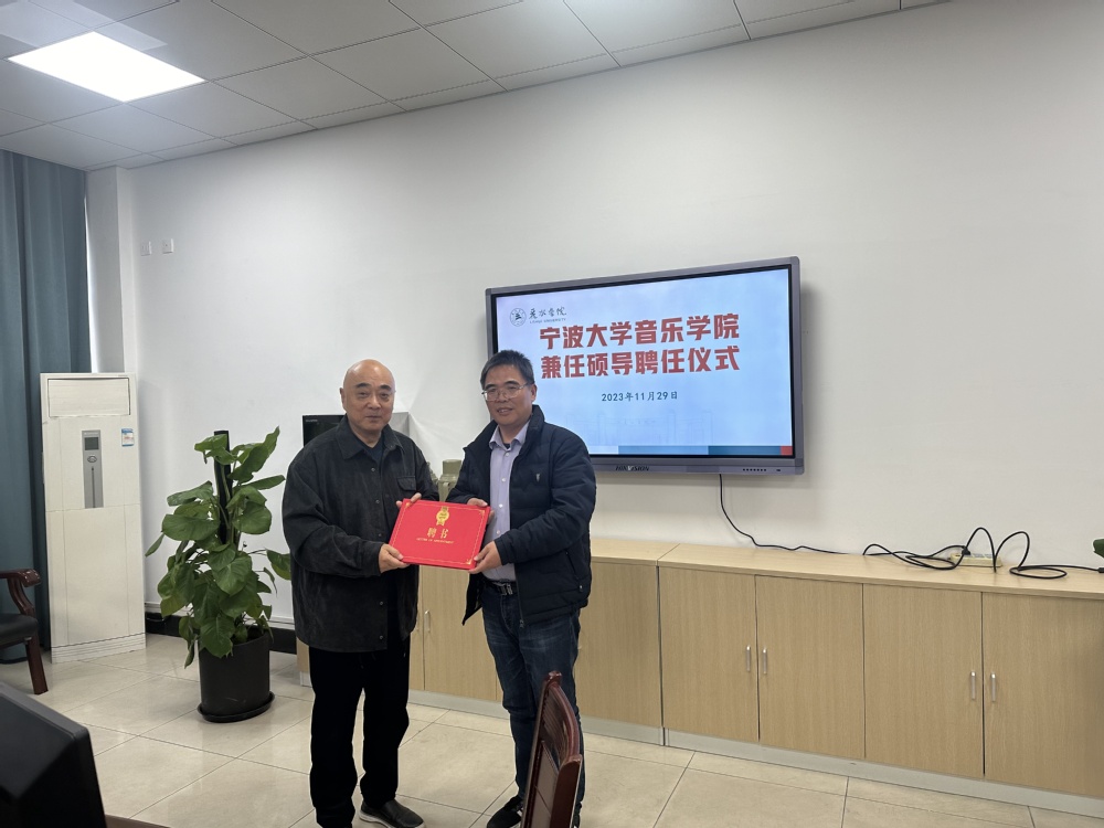 会上,宁大音乐学院为我校音乐学院罗俊毅、夏伟涛两位老师颁发了宁波大学音乐学院硕士生导师证书。