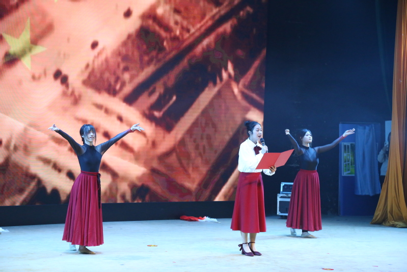 决赛共分为三个篇章——青春逢盛世、扬帆正当时、谱写新华章,通过歌舞、朗诵、脱口秀等节目,为我校师生献上了一场视听盛宴,充分展现了2023级新生的青春风貌。比赛现场,朗诵《青春中国》字里行间诉说着对祖国的热爱;一曲《山歌好比春江水》磅礴又细腻道出祖国大好河山;舞蹈《New Dance》让我们感受到青春向上的朝气……选手们用歌声唱出青春所想,用舞蹈演绎青春岁月,用言语道出青春华章。现场还设置了校史有奖问答环节,在台下观众的阵阵掌声中,比赛被推向高潮。