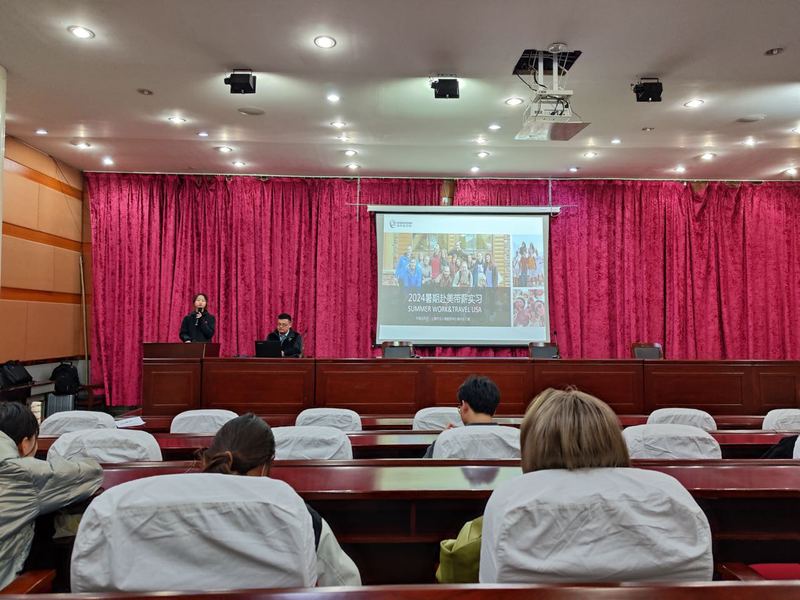 为开拓学生国际化视野,增强学生就业竞争力,11月30日,我校国际合作与交流处在思齐楼一楼报告厅举行2024年大学生暑期赴美带薪实习项目宣讲会。