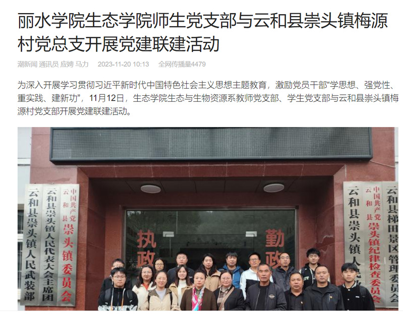 11月20日,潮新闻客户端刊发了我校生态学院师生党支部与云和县崇头镇梅源村党总支开展党建联建活动的相关消息。