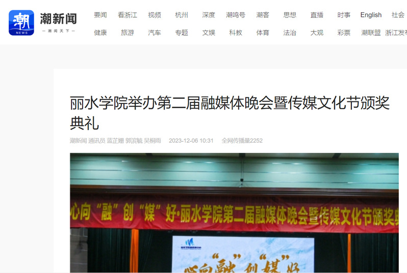 12月6日,潮新闻客户端刊发了我校举办第二届融媒体晚会暨传媒文化节颁奖典礼的相关消息。