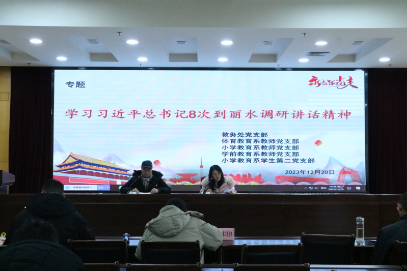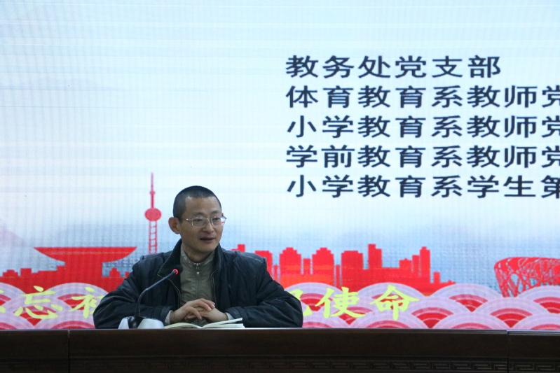 12月20日下午,教务处党支部、教师教育学院体育教育系教师党支部、小学教育系教师党支部、学前教育系教师党支部、小学教育系学生第二党支部在图书馆九楼两山报告厅联合开展了“创新形式学精神 凝聚发展新动力”主题党日活动,副校长彭兵以普通党员身份参加。