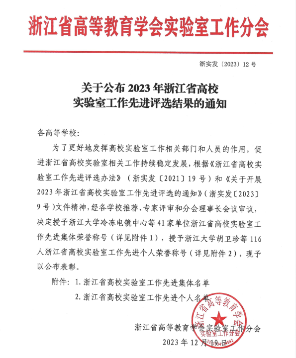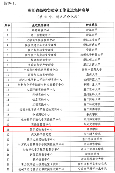 日前,浙江省高等教育学会实验室工作分会公布了2023年浙江省高校实验室工作先进评选结果,我校医学实验教学中心(以下简称实验中心)荣获浙江省高校实验室工作先进集体,这是实验中心2023年继获批浙江省普通本科高校“十四五”省级重点建设实验教学示范中心建设名单、丽水学院遗体捐献接受站殊荣后的又1项荣誉。