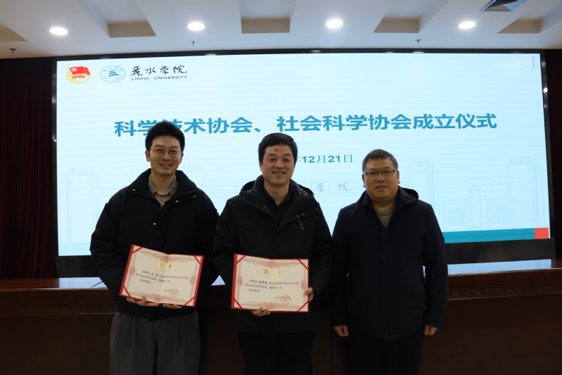 会上成立了丽水学院大学生科学技术协会和丽水学院大学生社会科学协会,两个协会分别由科研与地方合作处副处长胡伟俭和王昀担任指导老师。