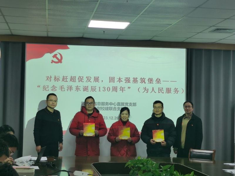 为认真学习贯彻党的二十大精神,深入开展学习贯彻新时代中国特色社会主义思想主题教育,推动党史学习教育常态化长效化,12月26日,在毛泽东同志诞辰130周年之际,图信中心直属党支部与计财校建联合党支部在图书馆九楼两山会议室开展“对标赶超促发展,固本强基筑堡垒——‘纪念毛泽东诞辰130周年’”主题党日活动。
