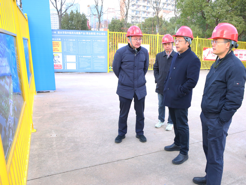 张赟一行走进在建的中医药与健康产业中心项目现场,仔细观摩效果图,听取项目进展汇报。他强调,要深入贯彻落实好省、市有关安全生产的工作会议精神,牢牢守住安全生产底线,高标准高质量高效率落实落细工程建设任务,力争项目早日完工投入使用,加快补齐产业平台硬件设施短板。随后,他来到中医药与健康现代产业学院(浙江省丽水中药产业技术创新服务平台),参观了该产业学院平台展厅展出的中医药系列产品,对下一步深化服务丽水中医药产业化发展之路提出了指导性意见。