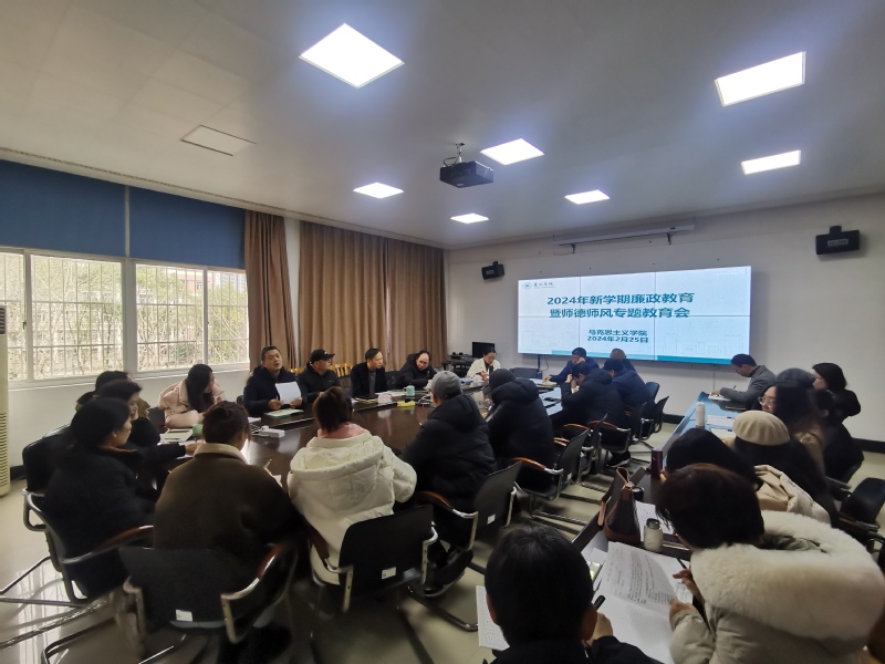 2月25日下午,马克思主义学院召开2024年新学期廉政教育暨师德师风专题学习会,会议组织全院教职工认真学习二十届中央纪委三次全会精神、十五届省纪委三次全会精神、《党史学习教育工作条例》《中国共产党巡视工作条例》《中国共产党纪律处分条例》《新时代高校思想政治理论课教师行为规范和准则》等内容。